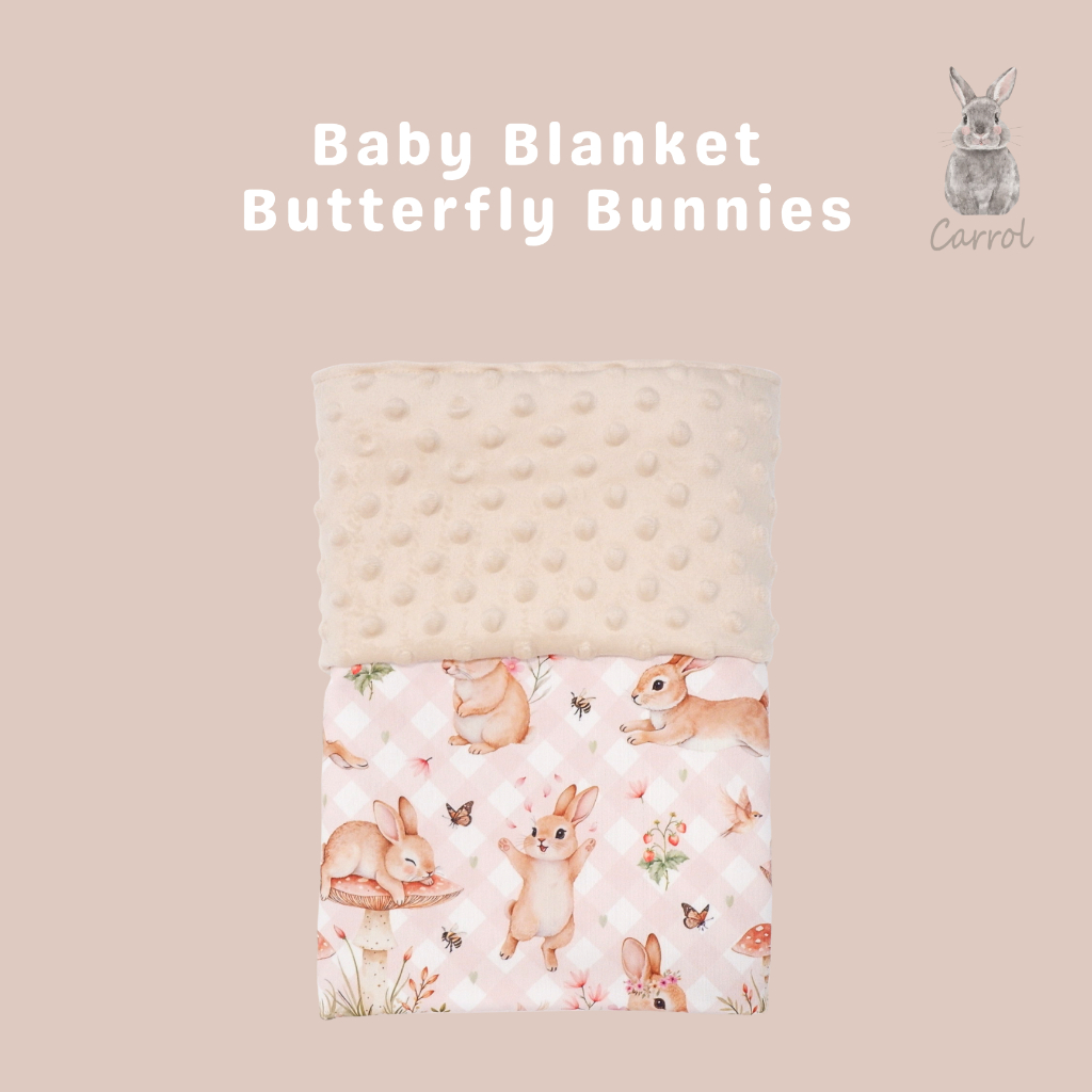 Carrol Baby Blanket Baby Size Butterfly Bunnies – Selimut Bayi – Selimut Baby Minky Dot Blanket – Blanket Baby Motif Lucu