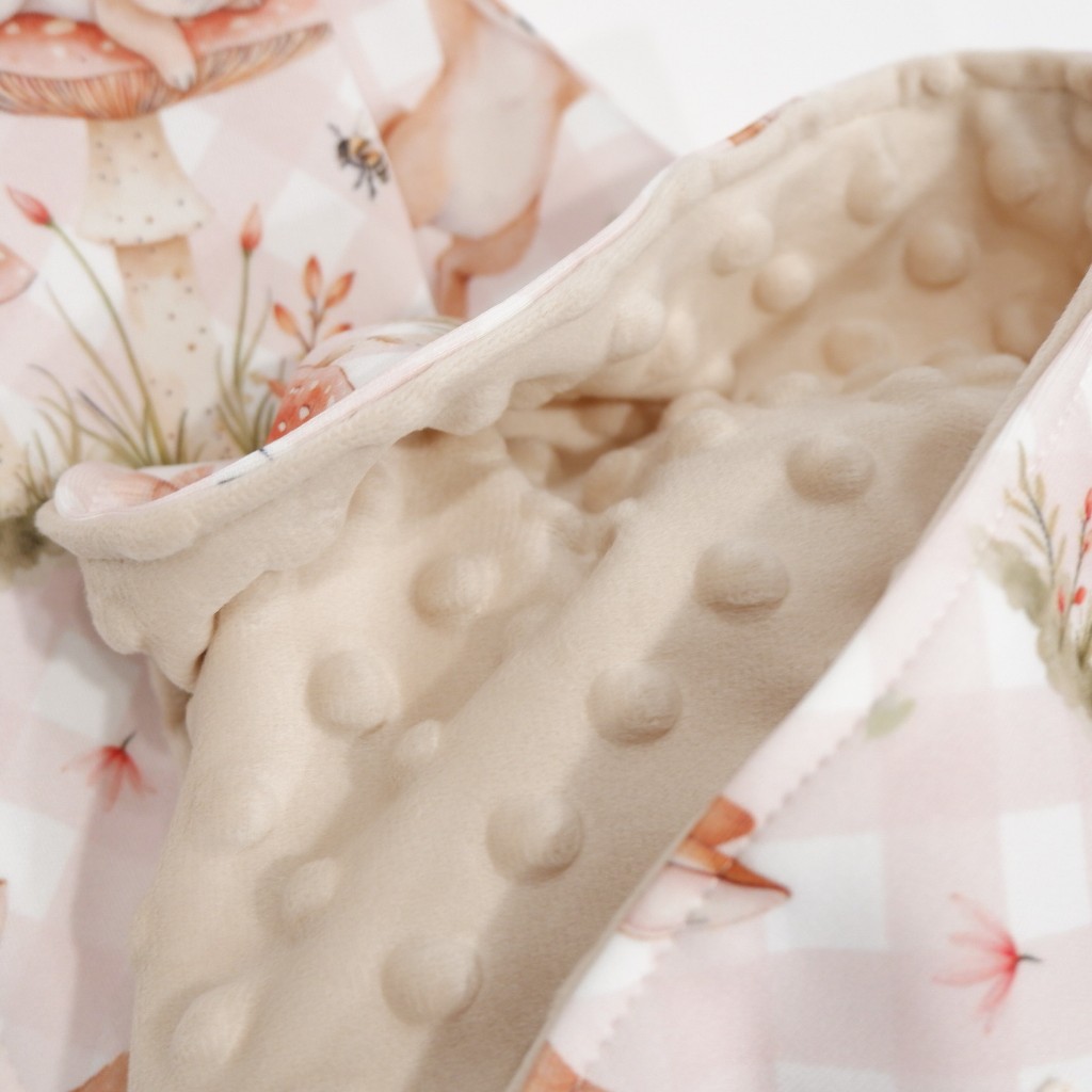 Selimut Bayi Dengan 1 Sisi Motif Lucu Sesuai Gambar Dengan Bahan Scuba Sutera Dan 1 Sisi Minky (Velboa Dengan Tekstur Dot).