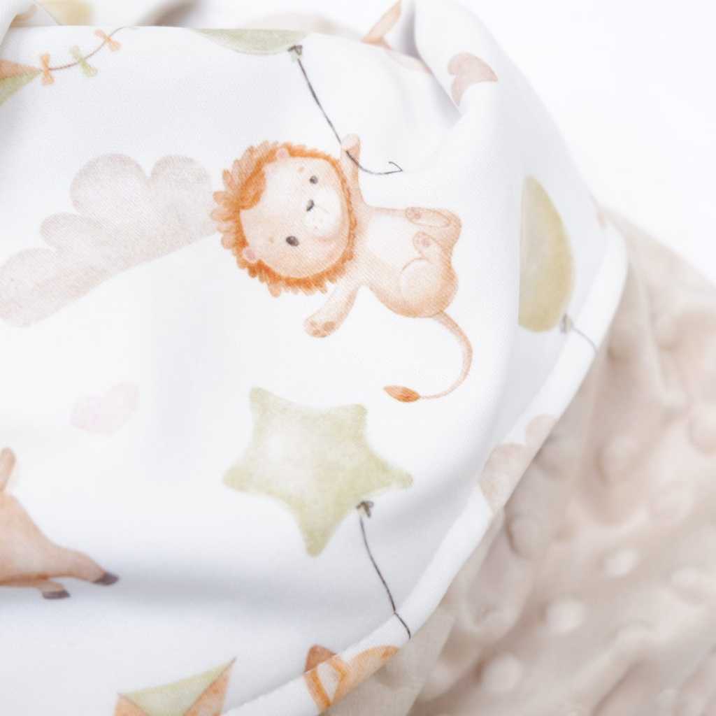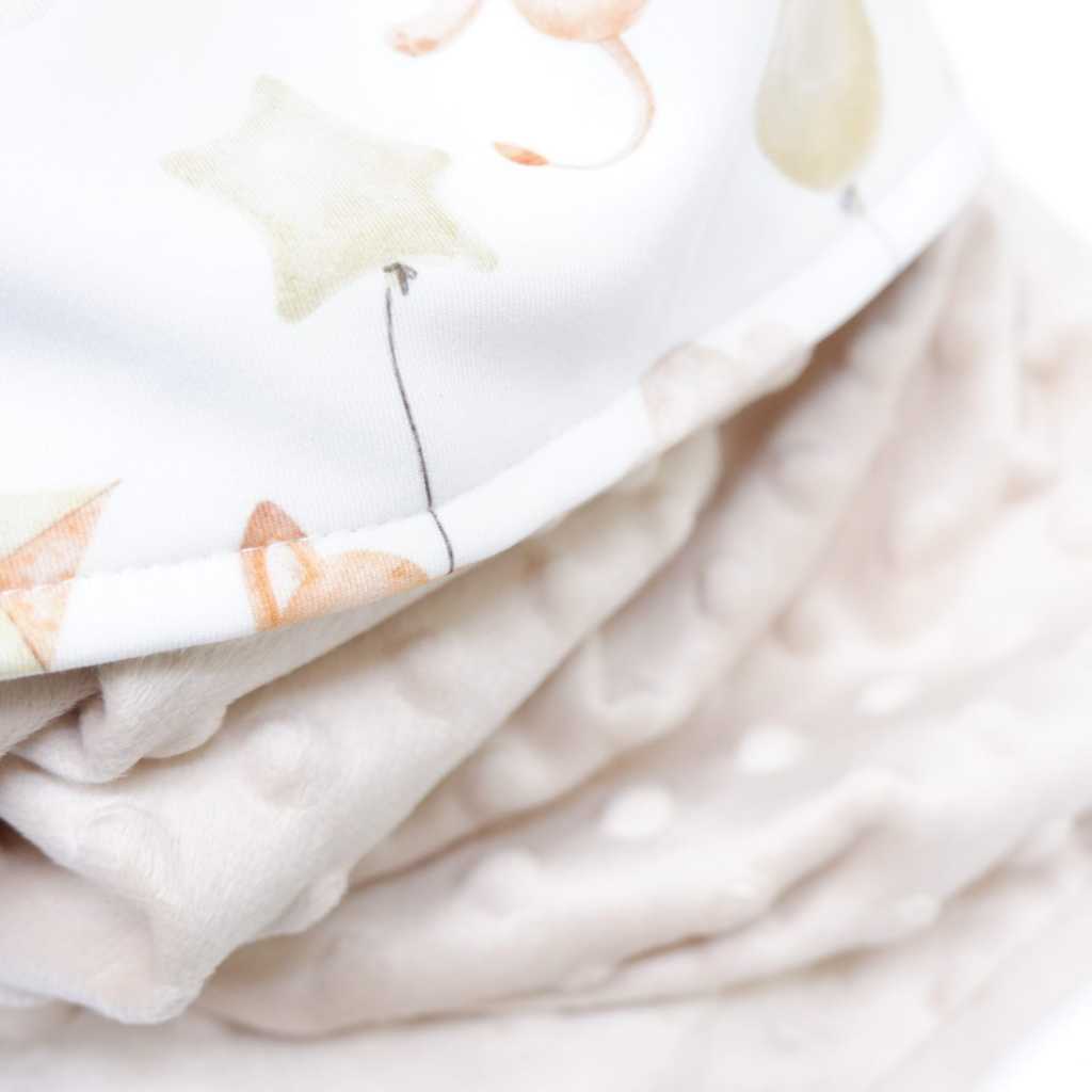 Selimut anak ukuran 100cm X 150cm dengan 2 sisi yang bisa digunakan bolak balik. 1 sisi bergambar dan 1 sisi berbulu dengan tekstur dot (minky).