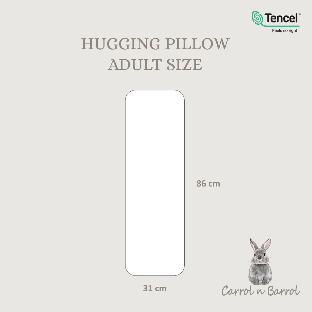 Carrol Baby Hugging Pillow Adult merupakan bantal peluk Berukuran besar untuk menemani mom / si kecil tidur dengan bahan Tencel Micro Modal (Eco Friendly) dan isi bantal microfiber yang sangat lembut, bebas zat kimia, tidak berdebu dan anti alergi.