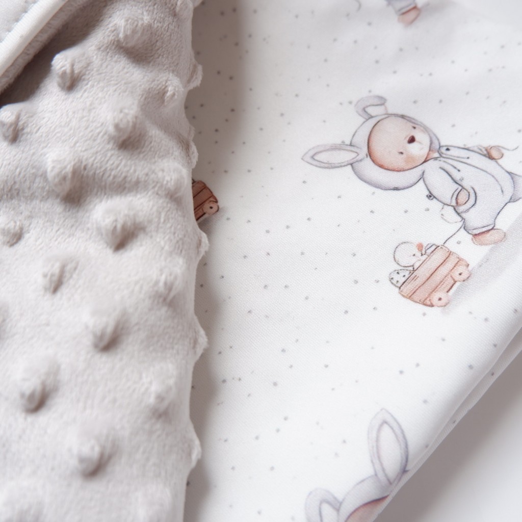 Dengan bahan Cotton blend yang di padukan Minky dot ( bulu dengan tekstur dot) membuat selimut ini lembut dan hangat.