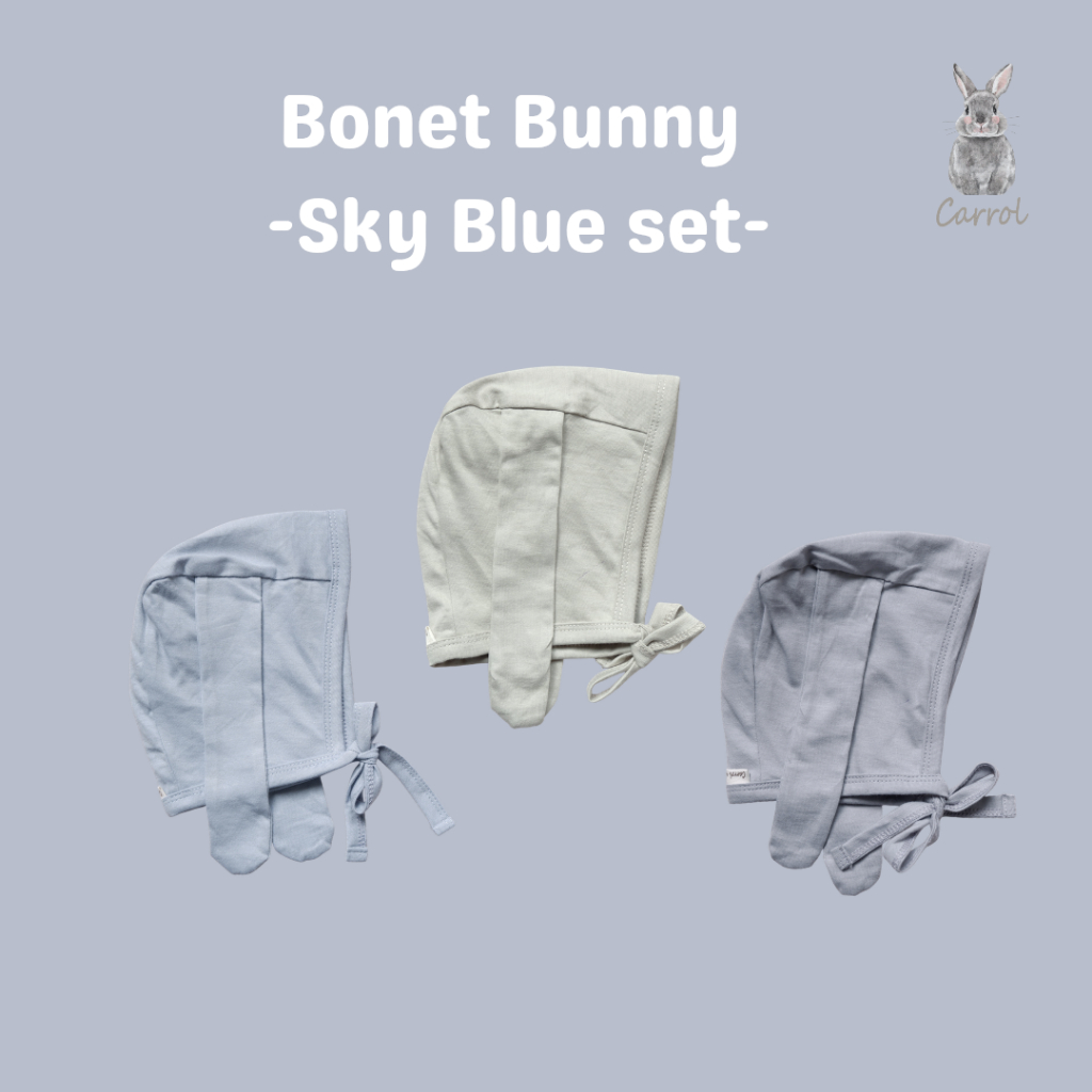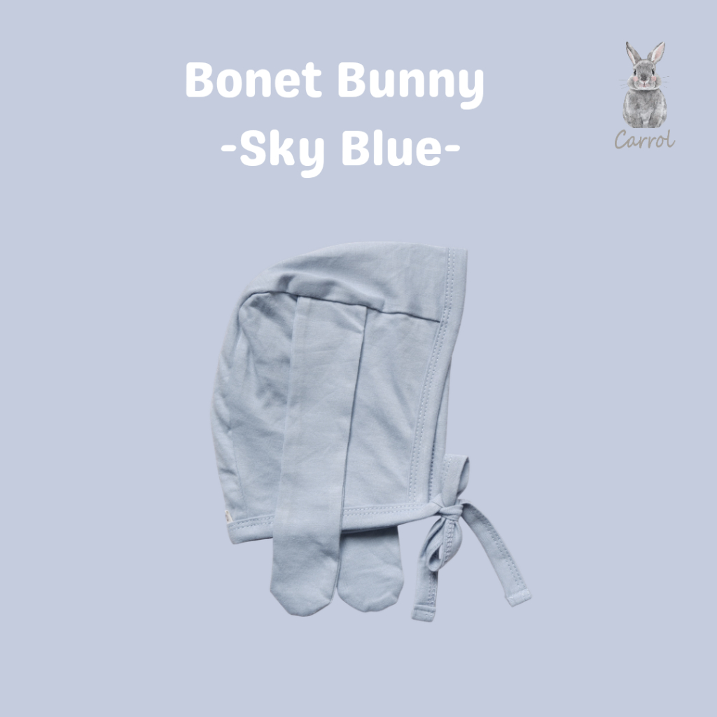 Bonet bunny terbuat dari 100% cotton yang dapat digunakan dari bayi baru lahir sampai 6 bulan (maksimal BB di 7,5KG)