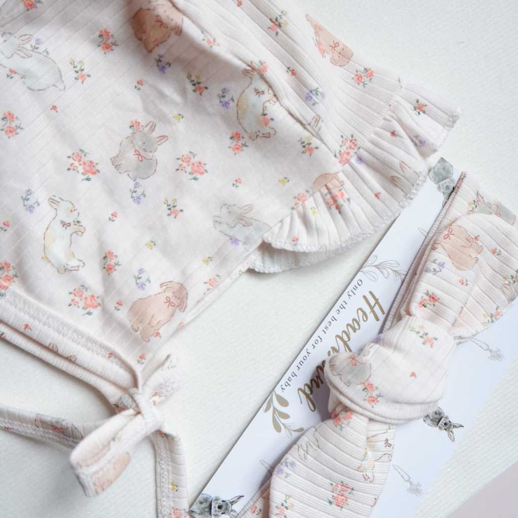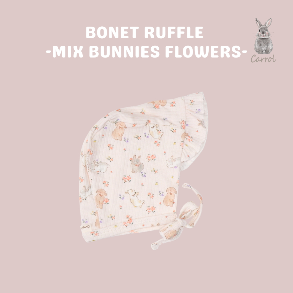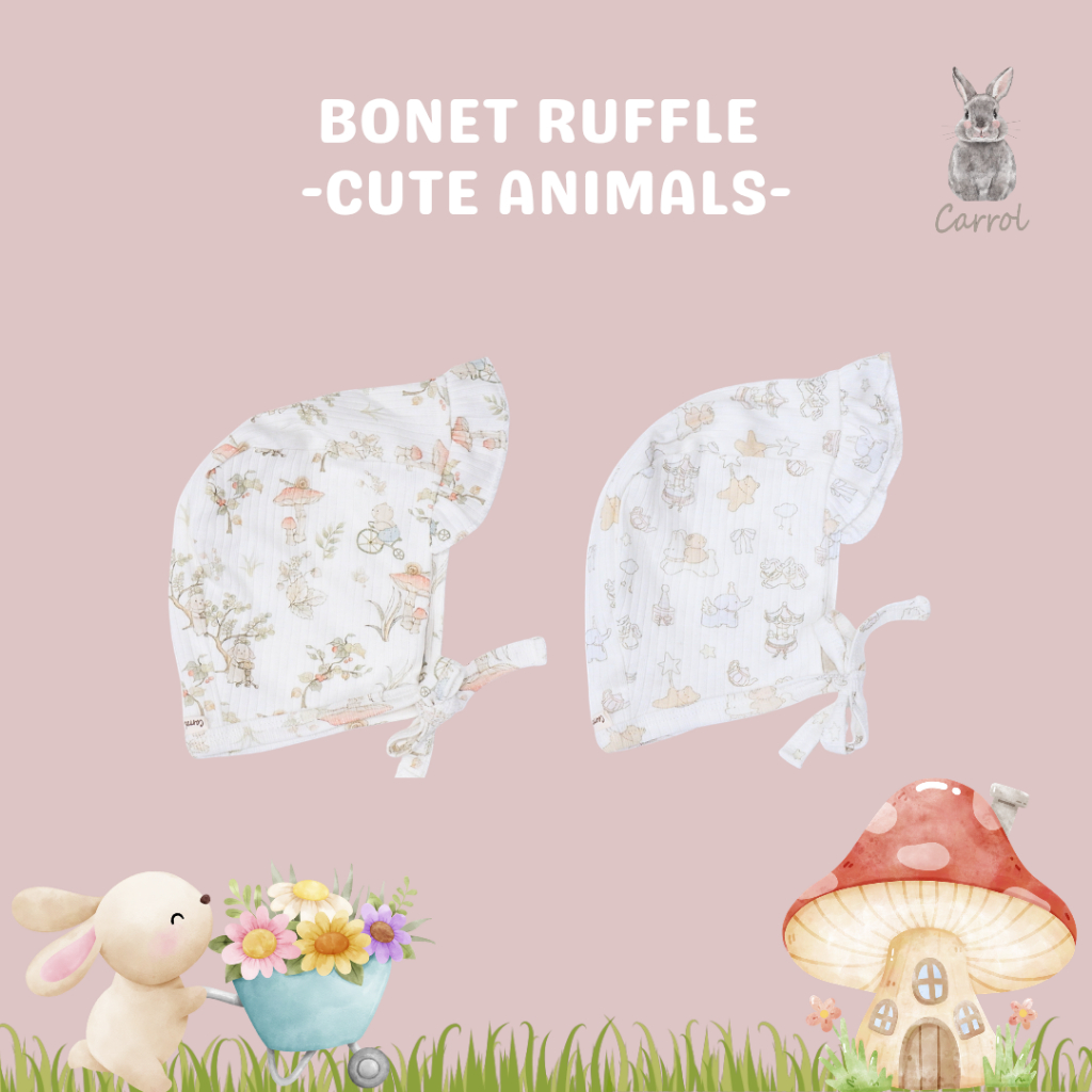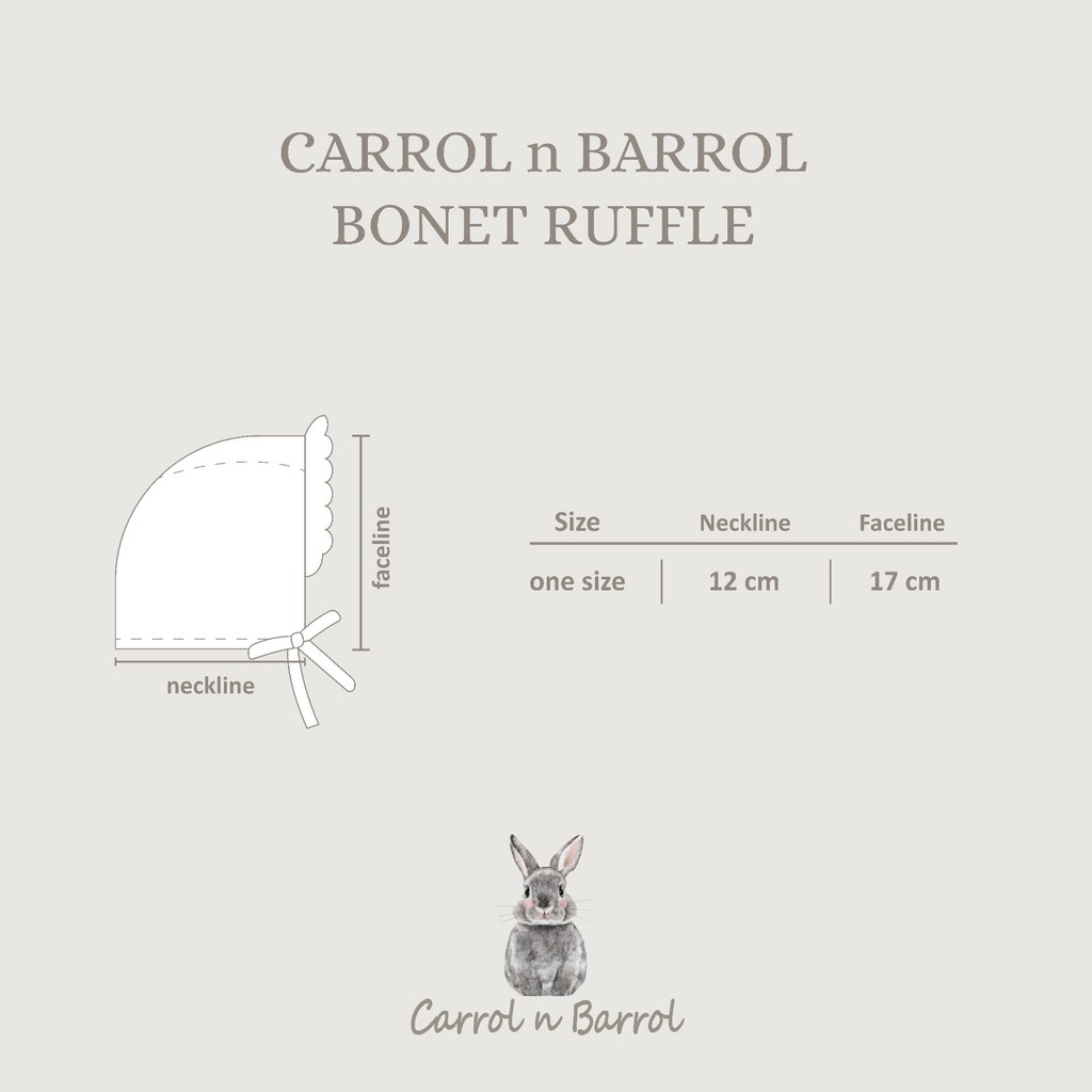 Bonet Ruffle terbuat dari Ribbed cotton yang dapat digunakan dari bayi baru lahir sampai 6bulan (maksimal BB di 7,5KG)