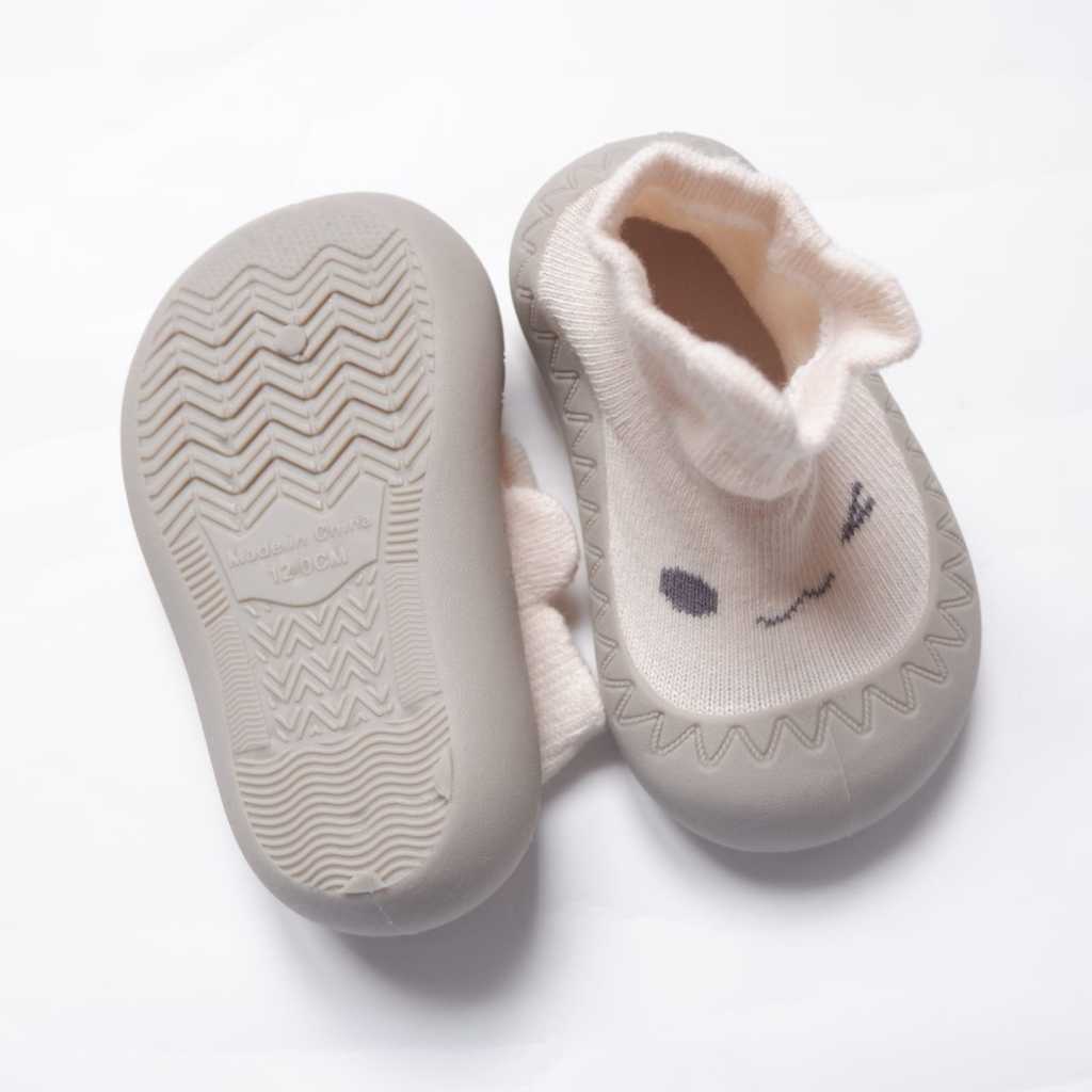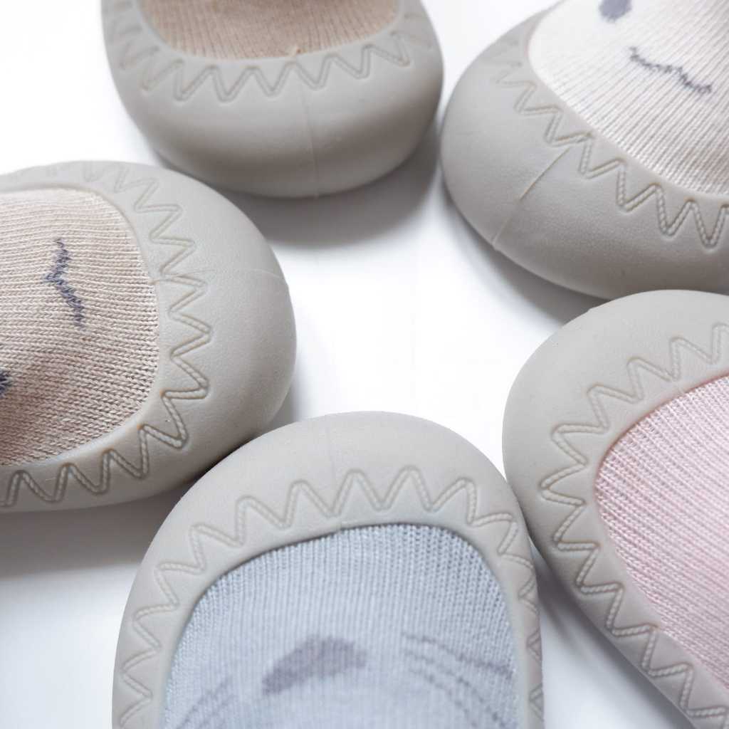 Bahan : Telapak karet silikon dan bagian atas katun yang lembut, sehingga nyaman di pake untuk bayi dan tidak membuat lecet kaki baby.