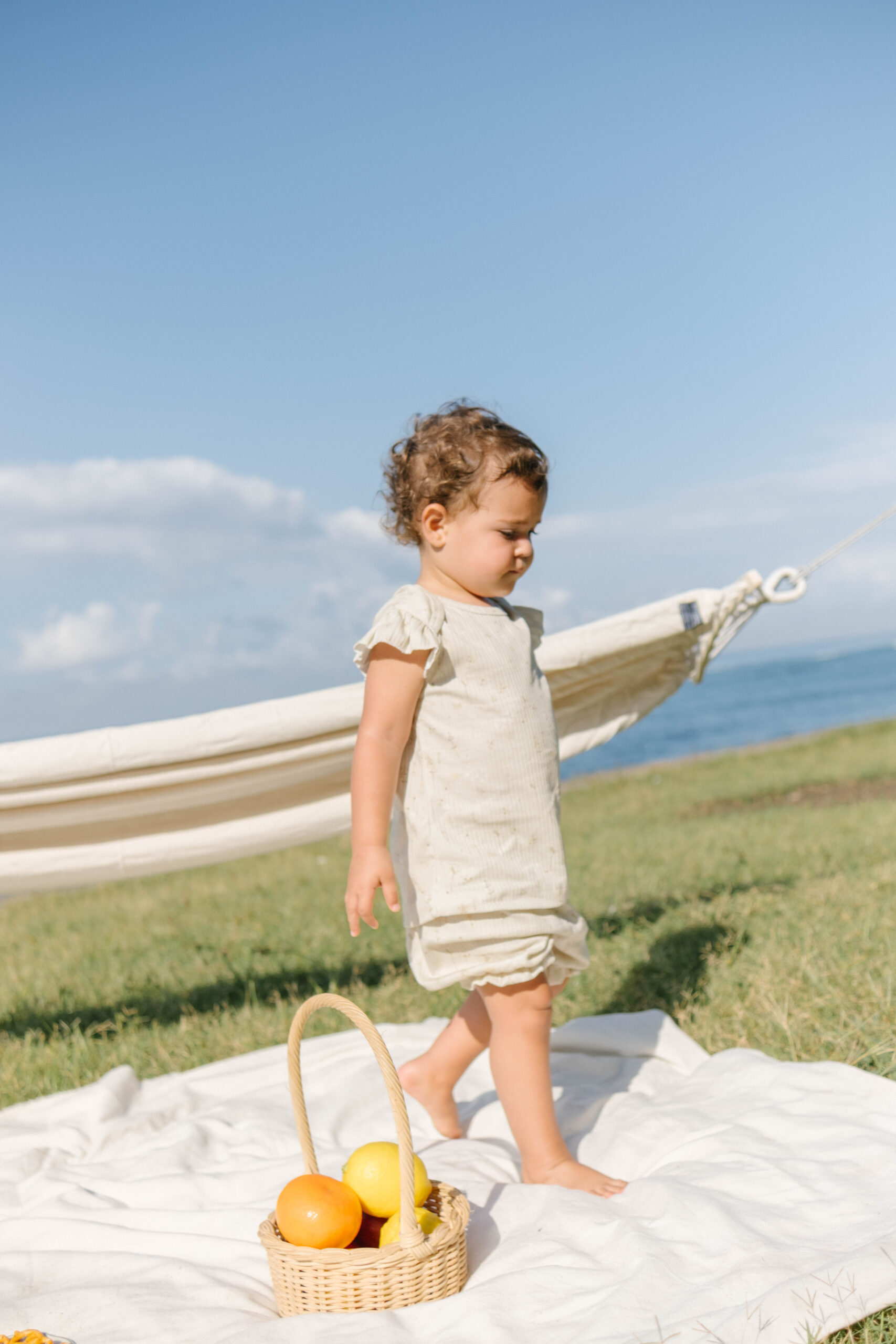 Ruffle Basic set dengan bahan Ribbed cotton, tersedia dari ukuran 1 tahun sampai 4 tahun.