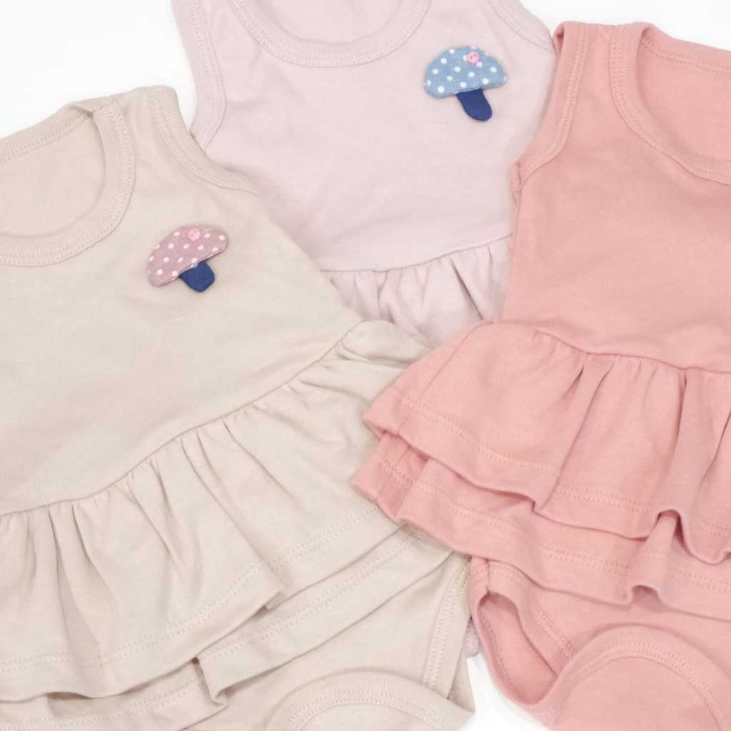 Jumper tanpa lengan dan model Ruffle di bagian bawah yang super lucu dapat dipakai sehari-hari di dalam rumah maupun bepergian.